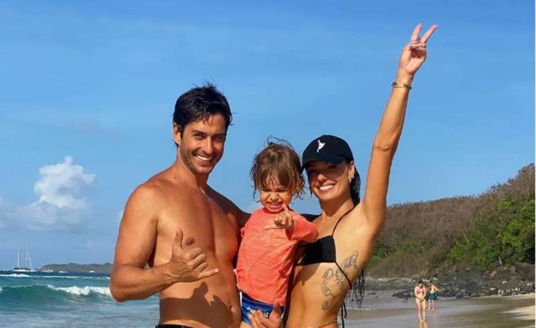 Em uma das fotos da publicação, o casal aparece com o filho Rael, de 3 anos. Na legenda, o modelo, que está longe da mulher, escreveu: "Parabéns, amor da minha vida. Deus te abençoe e ilumine, muito amor e saúde! Saudade tá grande. Feliz aniversário".