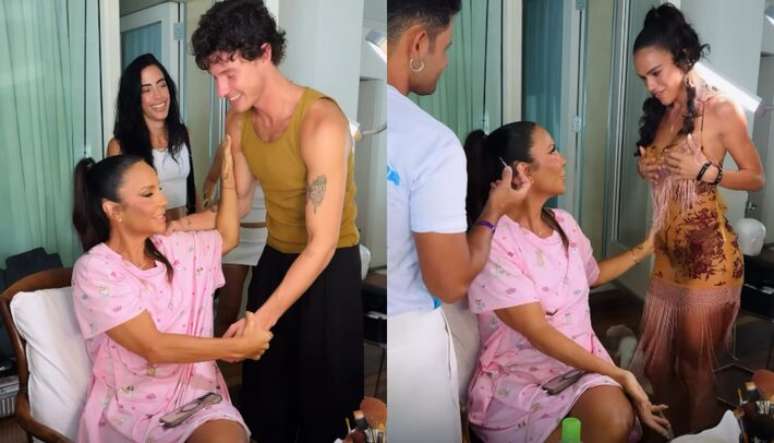 Ivete Sangalo encontra Shawn Mendes e Bruna Marquezine antes de desfile no carnaval de Salvador