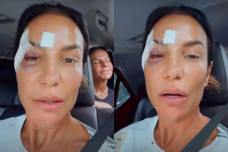 "Estou lançando agora uma maquiagem diferente", brincou a cantora nos stories do Instagram, ao aparecer com curativos no rosto e com o olho roxo.