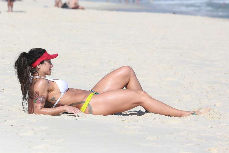 Ex-BBB se bronzeou na Barra da Tijuca nesta quarta-feira