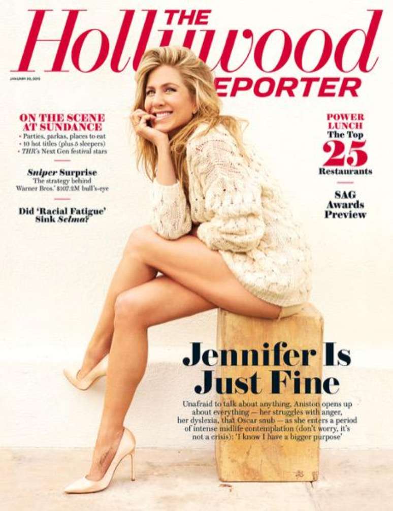 Jennifer Aniston está curtindo o seu primeiro papel dramático aclamado pela crítica, no filme Cake. Mas além disso, ela exibe boa forma física invejável na capa da revista The Hollywood Reporter, usando um blusão, short minúsculo e sapatos de salto alto dourados. Com informações do site do jornal britânico Daily Mail.