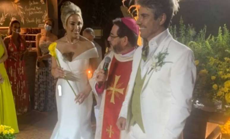 Momentos da cerimônia de casamento foram publicados por convidados como Sonia Abrão e Helô Pinheiro nas redes sociais