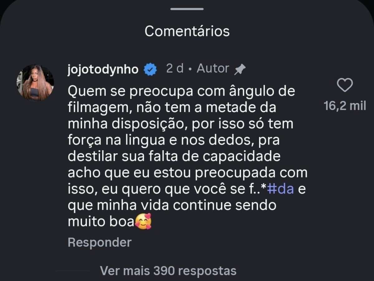 Jojo, por sua vez, deixou claro que não pretende silenciar diante de ataques. E segue usando suas redes para mostrar sua rotina e responder quando considera necessário.