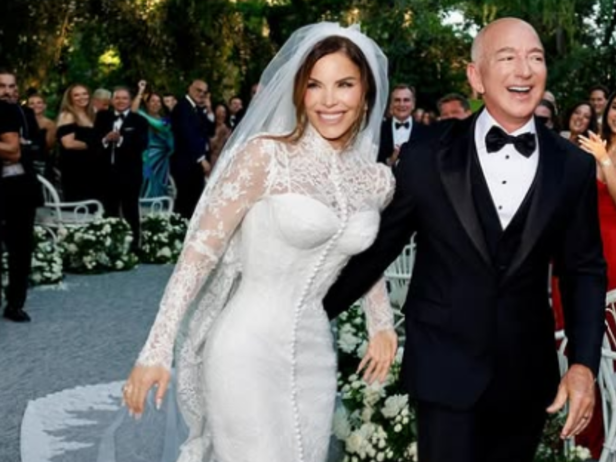 Jornal italiano revela sumiço de vestido de noiva de Lauren Sánchez em casamento com Jeff Bezos