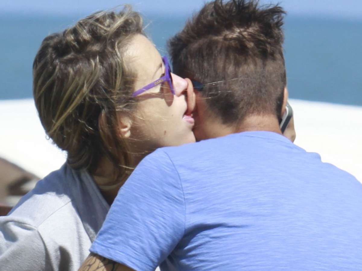Juliana Didone e o namorado, o artista plástico Flávio Rossi, foram vistos na Barra da Tijuca entre beijos e fotos românticas, nesta segunda-feira (19)
