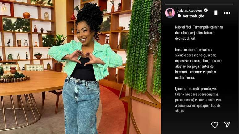 Juliana Oliveira se manifestou brevemente nas redes sociais, mas disse que não falaria muito agora, apenas quando estivesse pronta