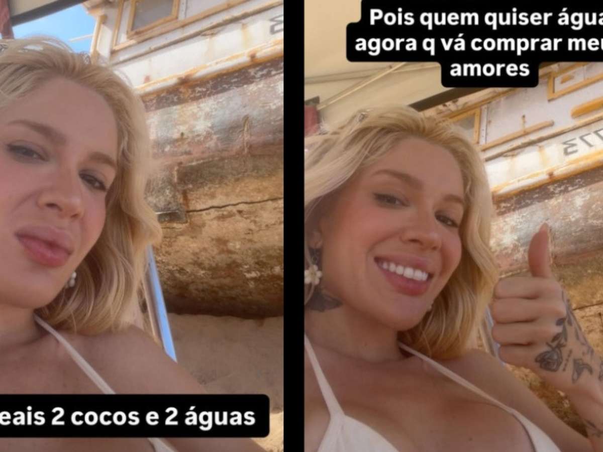 Karoline Lima fica chocada ao pagar R$ 90 em duas águas e dois cocos em Noronha