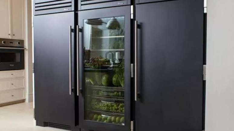 A mamãe do clã autorizou que a Poosh, marca de sua filha Kourtney, fizesse uma sessão de fotos ao refrigerador em tom de preto fosco. O eletrodoméstico gigante traz três compartilhamentos que vão do chão ao dedo. OMG!