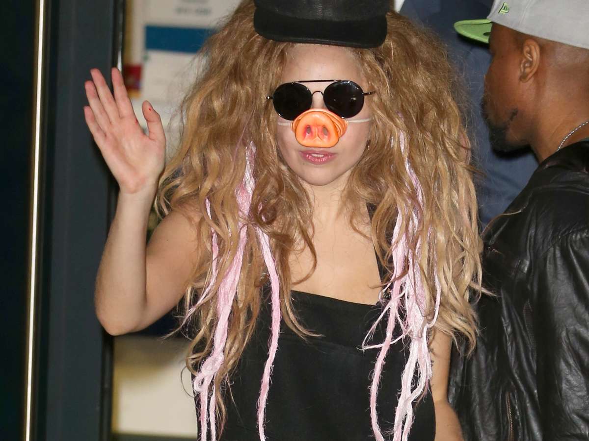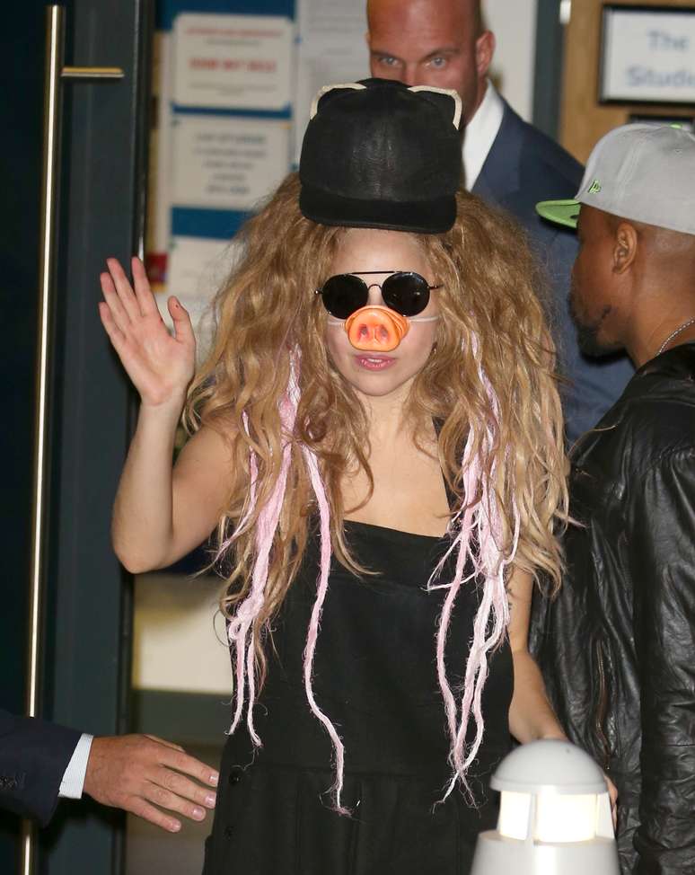 Lady Gaga circulou pelas ruas de Londres, na sexta-feira (30) com um visual um tanto bizarro. A cantora estava usando um focinho de porco e dreads cor de rosa.