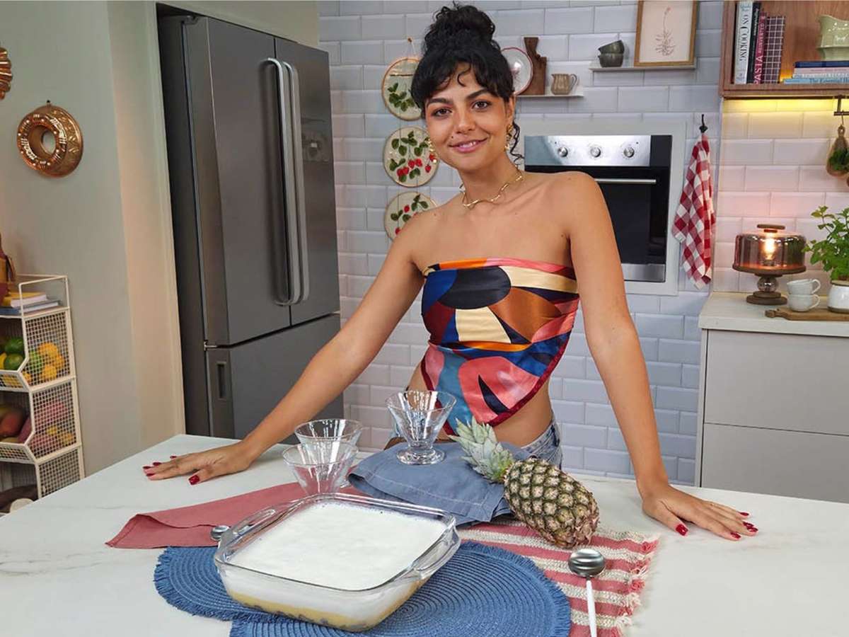 Nesta semana, Larissa comanda as panelas do Receitas, produto digital de gastronomia da Globo, para ensinar o passo a passo de torta de abacaxi, quitute que aprendeu com a avó. Durante o preparo, ela conta com a supervisão da matriarca da família, Gracinha, que acompanha parte do processo.