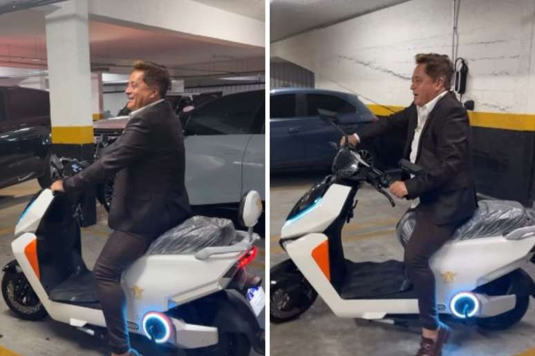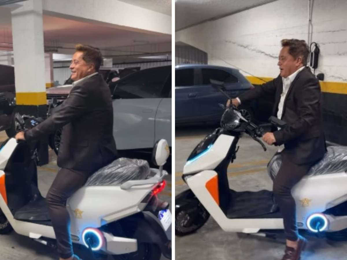 O cantor Leonardo, de 62 anos, preocupou a esposa, Poliana Rocha, de 49, na madrugada de segunda-feira, 13, ao dirigir uma moto elétrica que ganhou de presente.