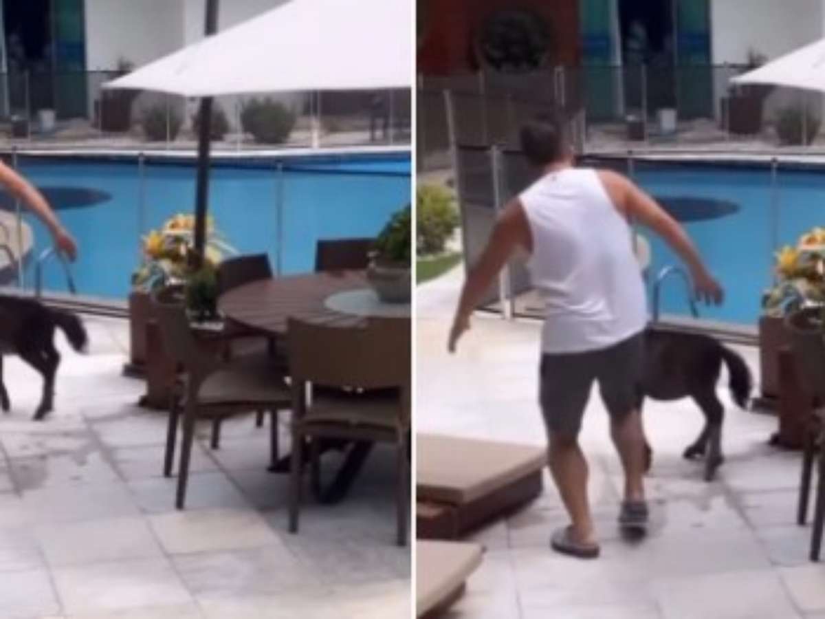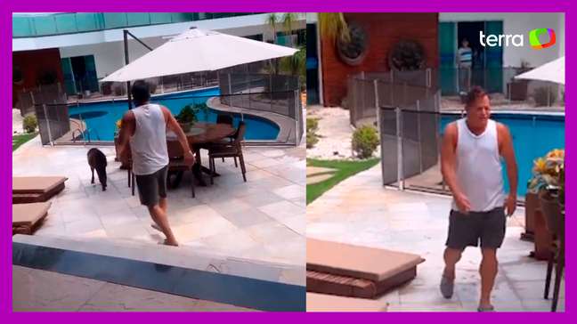 Poliana Rocha, esposa do cantor, gravou a cena enquanto ria da atitude do marido