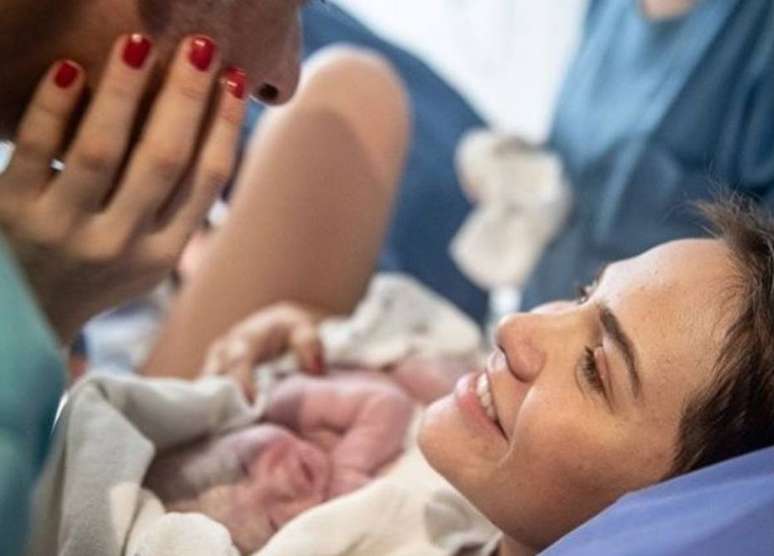 'Perdi um pedaço do mamilo, perdi o fôlego... Que momento para meu filho sorrir bem na minha cara!', escreveu a atriz em seu Instagram