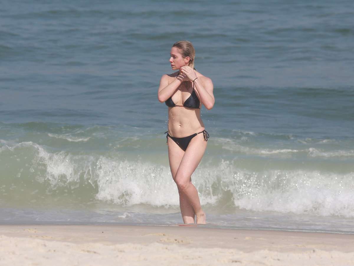 Letícia Spiller esteve nesta sexta-feira (16) na praia da Barra da Tijuca, no Rio de Janeiro. Aos 40 anos, ela exibiu boa forma ao se refrescar no mar.