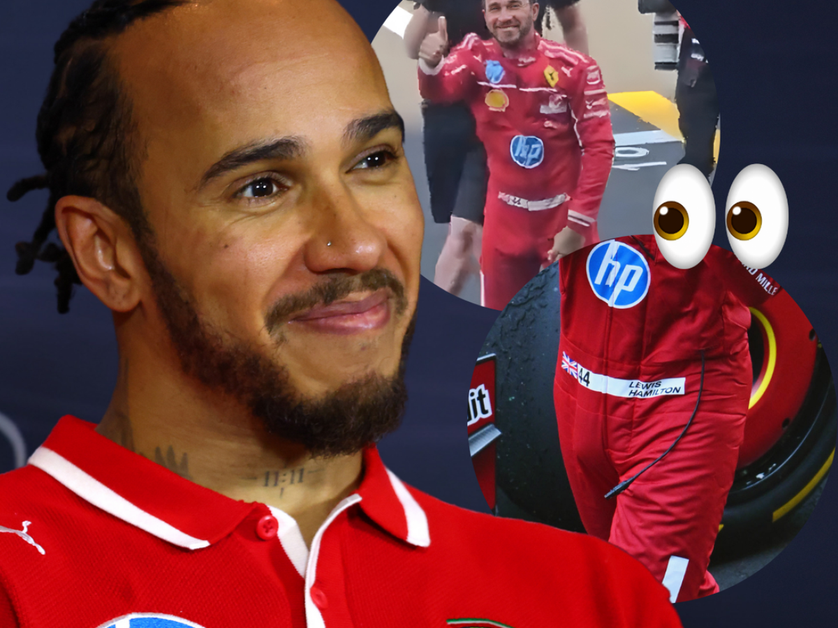 Lewis Hamilton, piloto da Ferrari, surge em vídeo acenando, mas um detalhe rouba a cena: 'Olha o tamanho da peça!'
