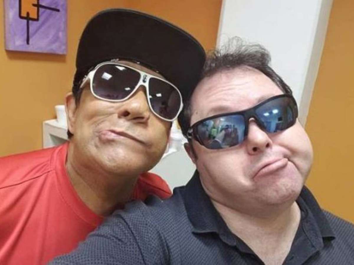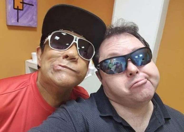 Liminha, assistente de palco do SBT, e o humorista Alexandre Porpetone.