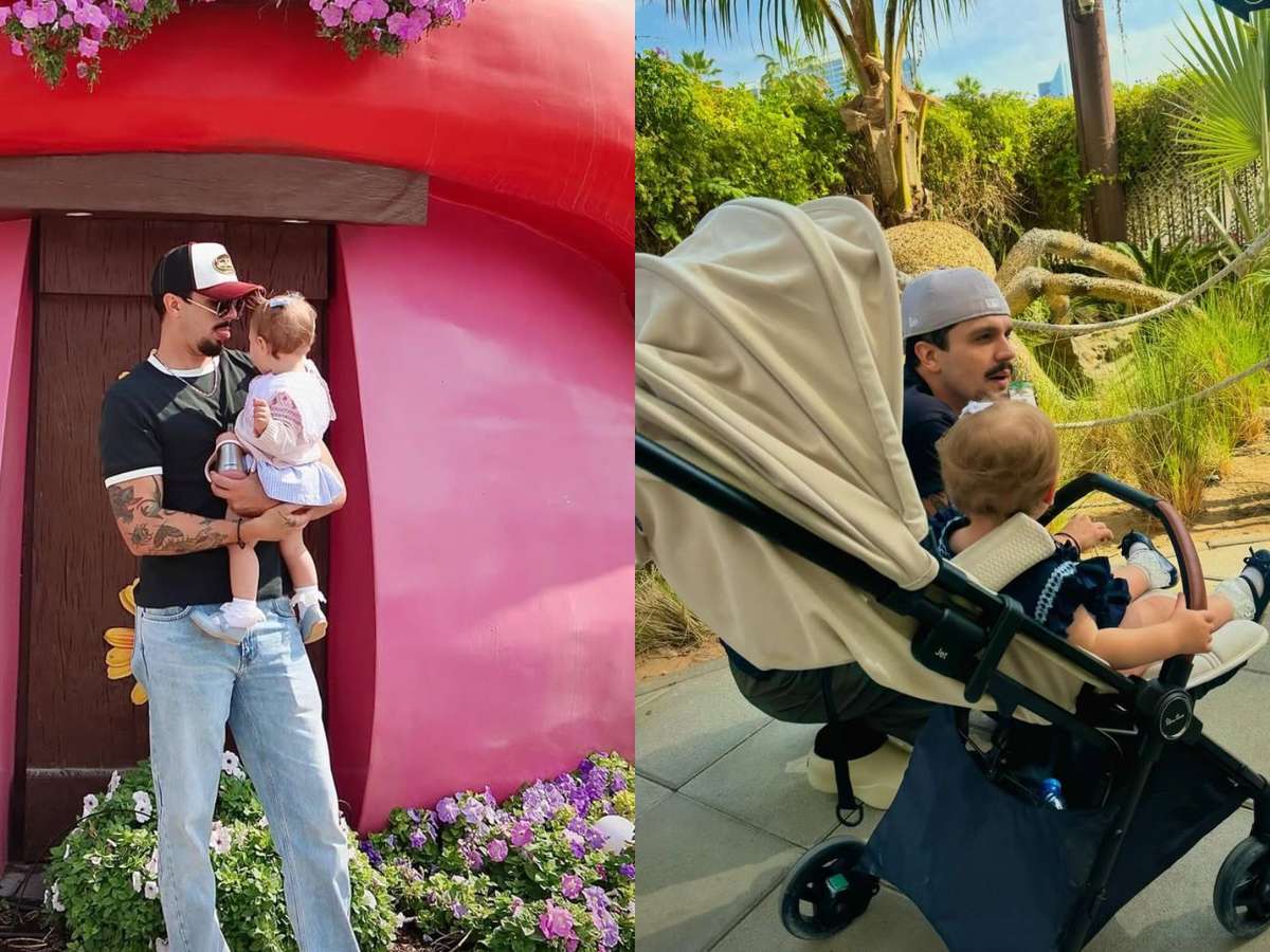 Luan Santana exibe registros discretos com a filha em Dubai e web reage: 'Já vira o rosto'