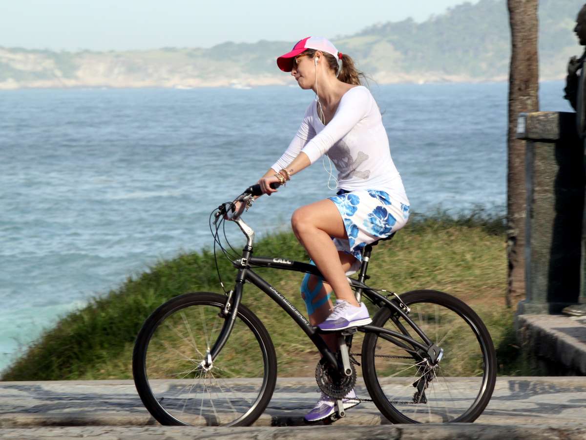 Luana Piovani pedala no calçadão do Leblon; veja fotos