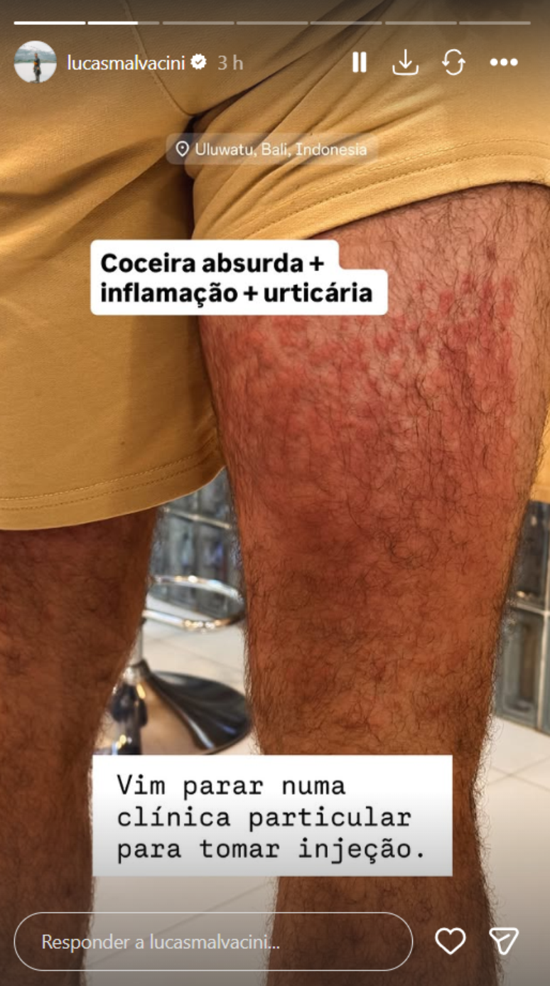 Ele aproveitava as férias no Sudeste Asiático quando sofreu uma reação alérgica. Lucas precisou de cuidados médicos urgentes para controlar uma forte inflamação.
