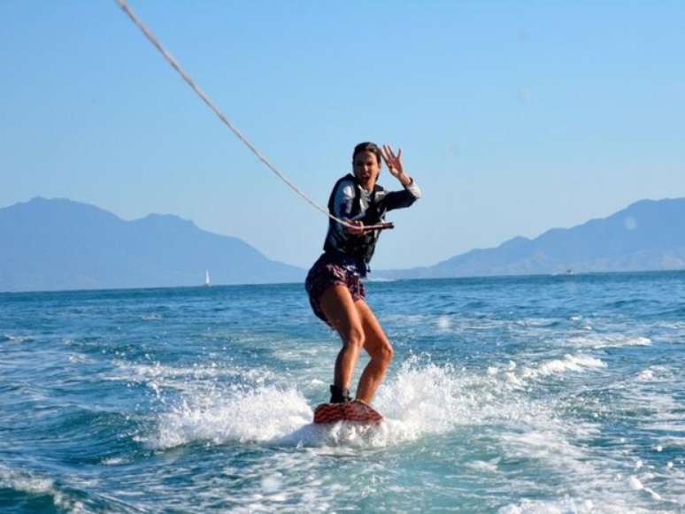 Luciana Gimenez aproveitou o dia ensolarado para praticar wakeboard. Fazendo careta, a apresentadora posou para foto e registrou o momento em seu Twitter, neste sábado (14).