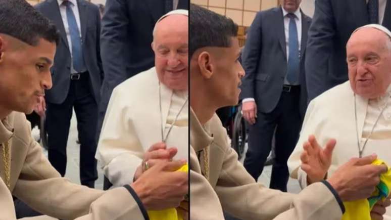Nas redes sociais, Luva revelou detalhes desse encontro inesperado. Ele trocou palavras com o pontífice, recebeu sua benção, mostrou a camisa da Seleção Brasileira e ainda fez uma pergunta para ele.
