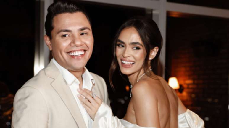 No dia oficial do pedido, que aconteceu em maio, ele surpreendeu a amada com uma joia de 2,50 quilates, elogiado por seguidor: "Perfeito". Já o noivo vestiu um terno bege com camisa branca.