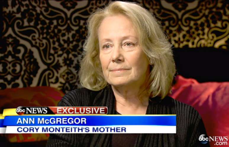 Mãe do ator Cory Monteith, Ann McGregor falou pela primeira vez sobre o filho, em entrevista ao programa Good Morning America, do canal ABC, que foi ao ar nesta quinta-feira (17). De acordo com o site US Magazine, a matéria foi gravada no começo desta semana, na casa da matriarca de 63 anos em Vancouver, no Canadá. Monteith morreu em 13 de julho do ano passado, vítima de uma overdose.