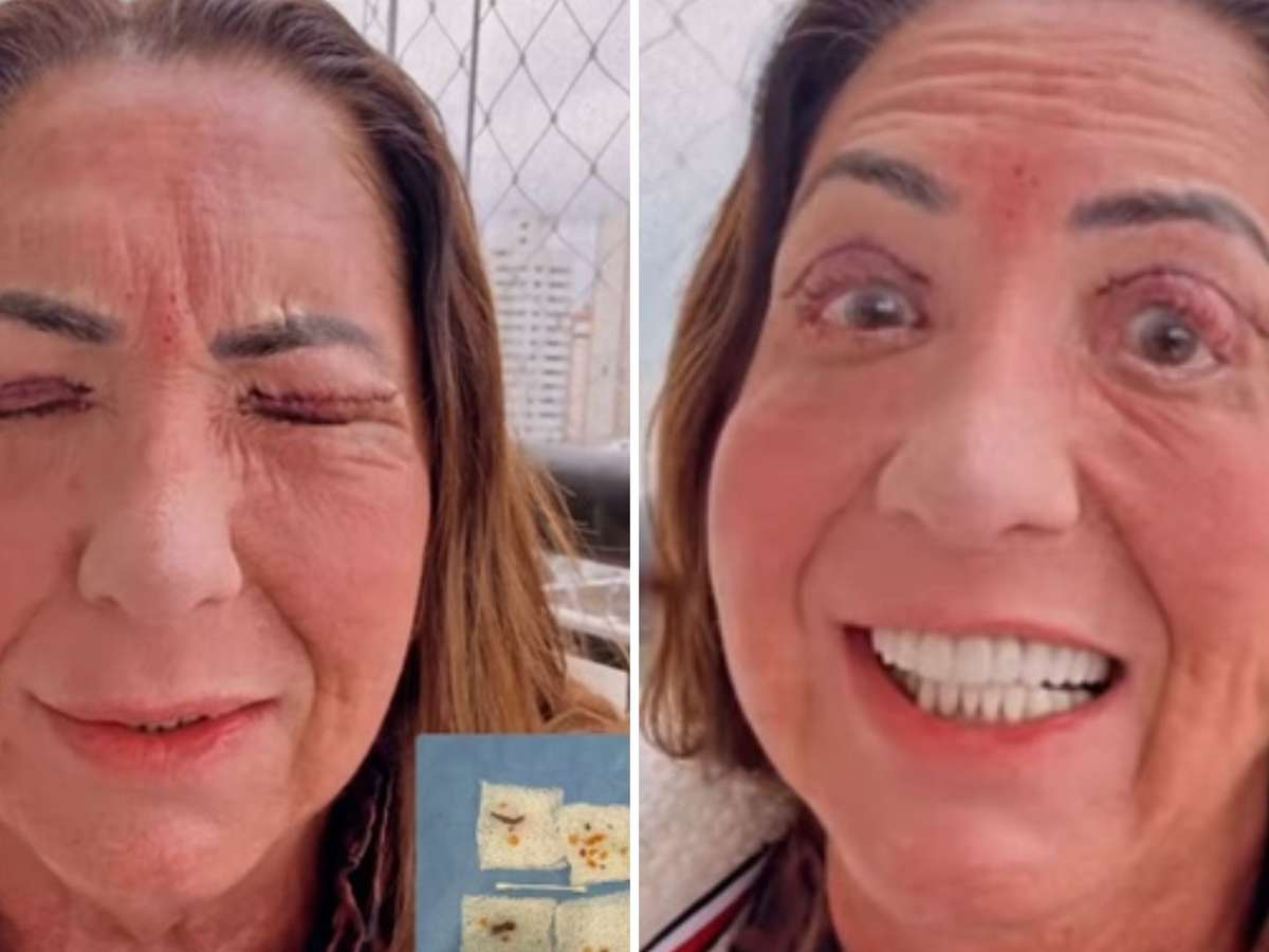 E acrescentou: "Então, tirou aquela pele que fica em cima e tirou aquela gordurinha que fica nessa bolsa aqui embaixo. E também fiz um laser bem potente no rosto. Meus olhos eram muito fechados. Não está bonito ainda porque está inchado".