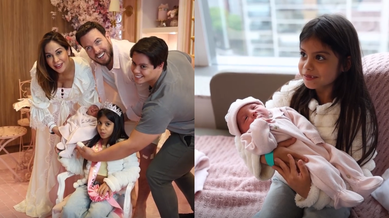 O encontro dos irmãos aconteceu no quarto da maternidade, onde Maíra e Thiago prepararam uma grande decoração, com flores e móveis pensados especialmente para receber a família e os amigos. O casal ainda montou um momento especial para Sophia, uma coroação como irmã mais velha, para apresentá-la a Eloáh.