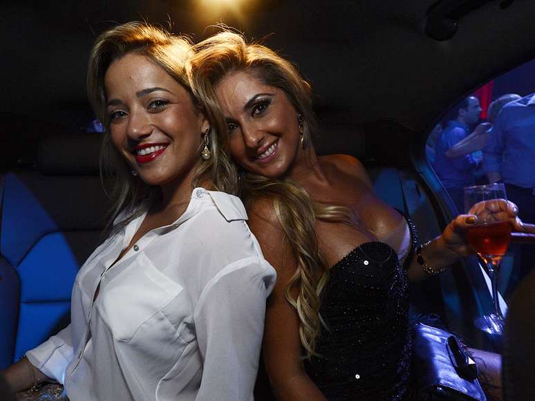 Simpáticas e esbanjando sensualidade, elas posaram dentro dos carros da Mercedez, tomaram champanhe e fizeram caras e bocas para os fotógrafos. Aline fez um ensaio para edição de janeiro da revista VIP.