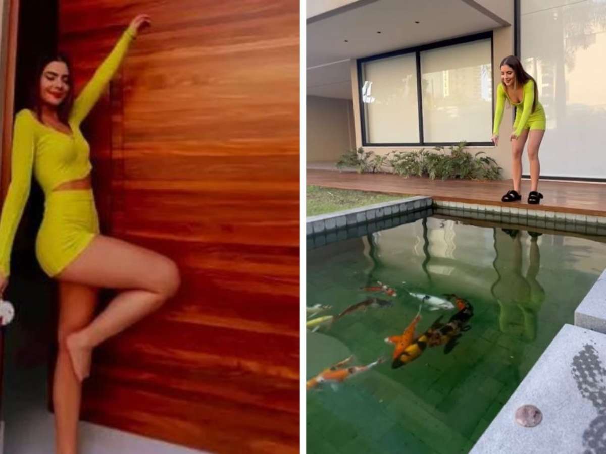 Mansão de Jade Picon tem porta gigante e lago com peixes; veja