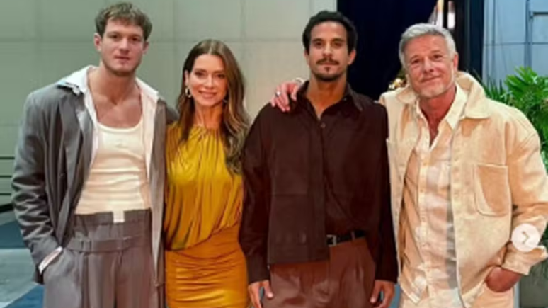 As fotos mostram o quarteto sorridente e descontraído, reforçando o vínculo familiar que se manteve mesmo após o fim do casamento. Marcello Novaes e Leticia Spiller foram casados entre 1995 e 2000 e são pais de Pedro Novaes, que atualmente interpreta Leonardo Ferrete na novela Três Graças, novo folhetim das nove da Globo. Já Diogo, o primogênito do ator, é fruto de um relacionamento anterior e também mantém uma relação próxima com o pai e o irmão.