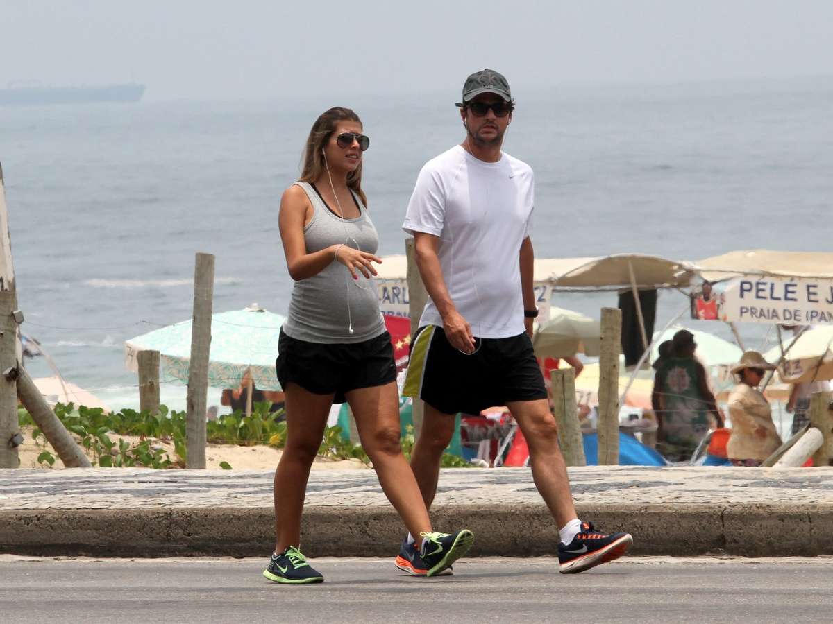 Marcelo Serrado fez um passeio pela orla da praia de Ipanema, no Rio de Janeiro, neste domingo (23). Ele estava acompanhado da mulher, a bailarina Roberta Fernandes, que está grávida de gêmeos