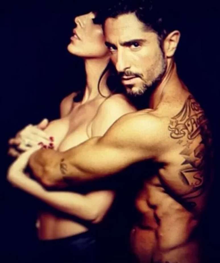 Marcos Mion postou uma foto em seu Instagram em que aparece seminu abrançando a mulher, Suzana Gullo, que está sem blusa.