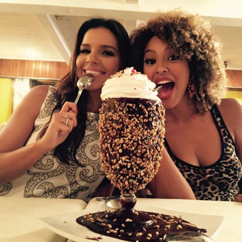 Neste domingo (15), circulou na rede uma foto das duas dividindo uma sobremesa gigantesca, toda coberta por calda de chocolate, chantily e castanhas picadas. "Nhami...", dizia a legenda.