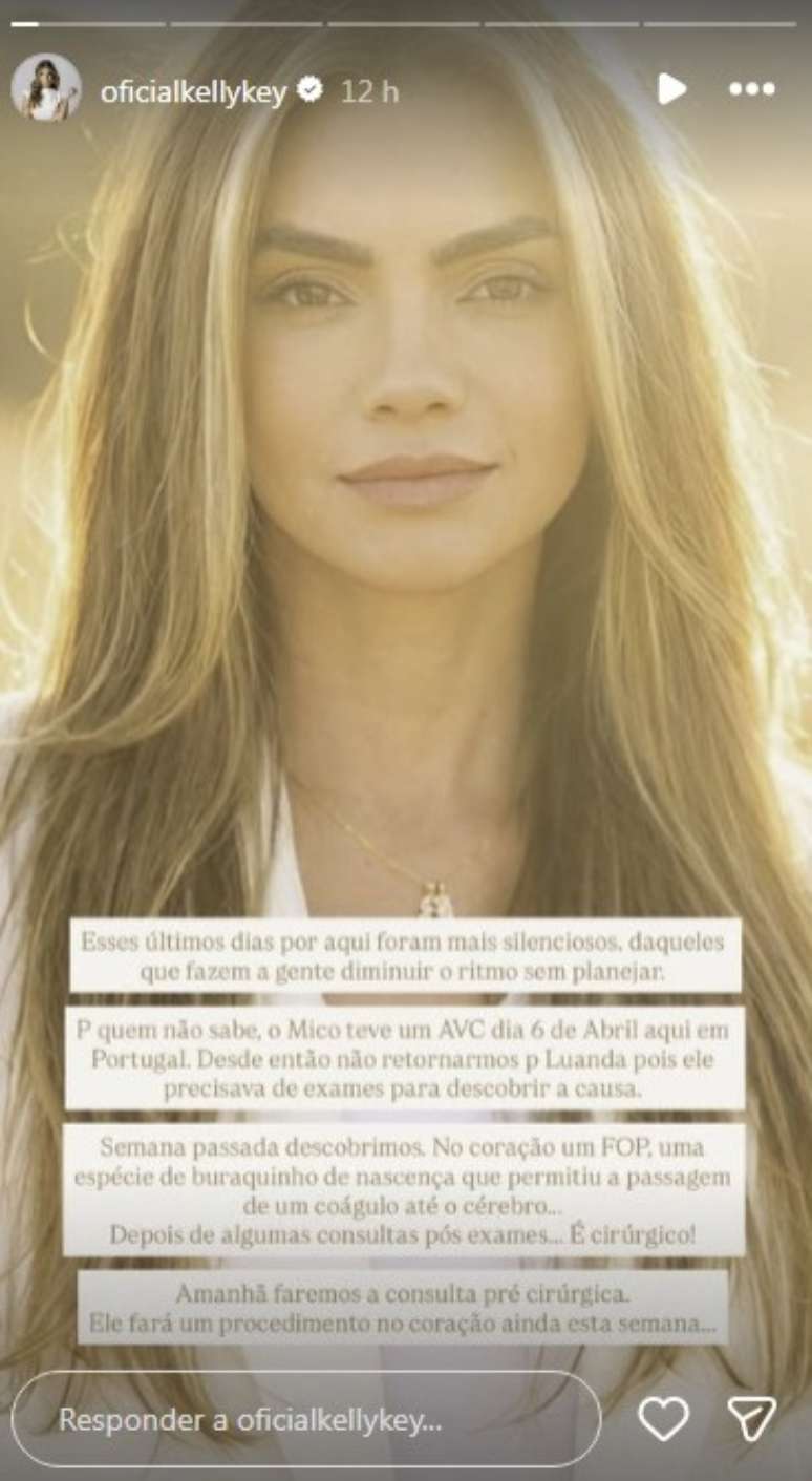 O empresário Mico Freitas, marido da cantora Kelly Key, sofreu um AVC isquêmico no início do mês enquanto estava em Lisboa, Portugal, e foi internado. Diretamente do hospital, enquanto aguardava o marido passar por uma nova bateria de exames, Kelly desabafou: "No meio de tudo isso, eu só consigo sentir uma coisa: gratidão. Gratidão por termos conseguido agir rápido. Pelo atendimento, pelos médicos, pela estrutura e pela recuperação dele, que está sendo tão positiva."