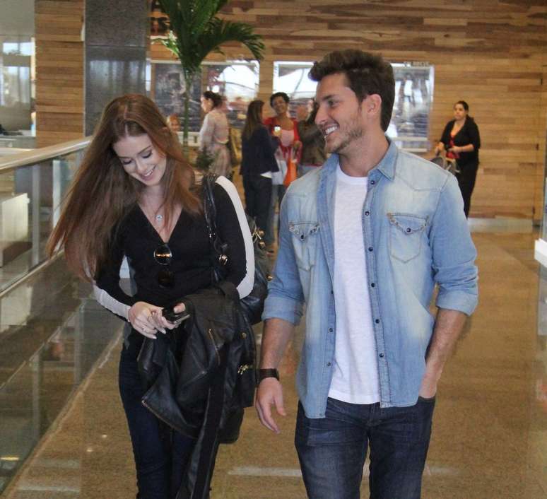 Marina Ruy Barbosa aproveitou uma pausa nas gravações da novela 'Amor à Vida', da TV Globo, para passear com o namorado, Klebber Toledo, no shopping Rio Design Barra, nesta quarta-feira (31). No local, o casal foi abordado por fãs e posou para fotos