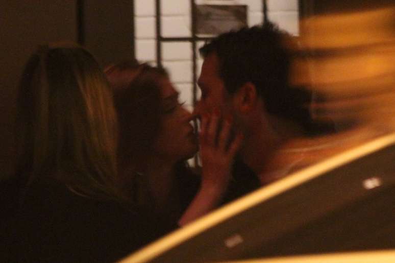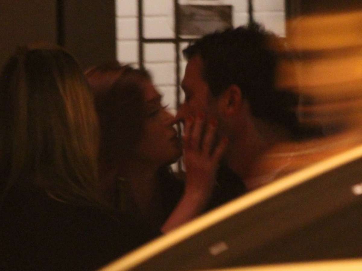 Marina Ruy Barbosa troca beijos com namorado em restaurante