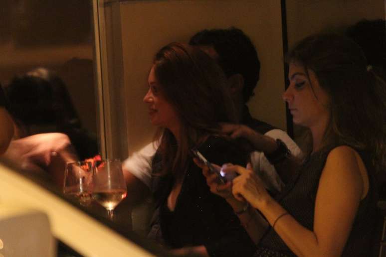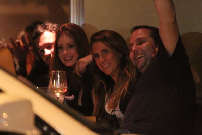 Enquanto o elenco de Império se reunia em uma festa à fantasia, Marina Ruy Barbosa aproveitou a noite de sexta-feira (10) para sair com namorado, o empresário Caio Nabuco, com quem engatou um romance recentemente. Ao lado de amigos, o casal trocou beijos em um restaurante no Leblon, no Rio de Janeiro.