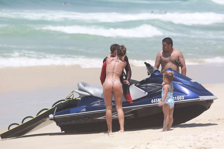 Mario Frias e Juliana Farias ficaram no maior love nesta quinta-feira (18), na praia da Barra da Tijuca, Rio de Janeiro, onde o ator gravava uma matéria para o programa Estrelas.