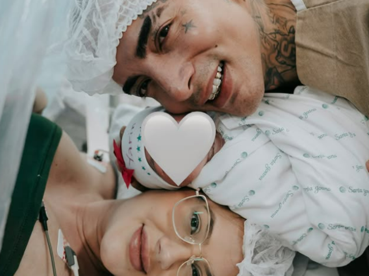 Nas imagens, o casal mostrou detalhes do pé de Yarin e da touca, com o nome escrito, usada por ela ainda na sala de parto. A menina também apareceu em uma foto com Guimê e Fernanda, mas eles esconderam o rostinho da filha com um coração. Veja o post:
