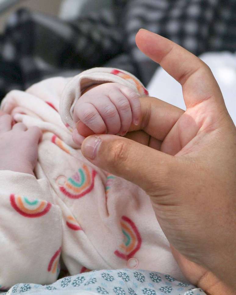 Loma compartilhou apenas uma foto da filha: uma em que segura a mão da pequena e deixa em evidência o macacão que a menina já usava. A postagem também apareceu no perfil da própria Melanie, que teve o Instagram criado pela artista meses antes do nascimento.