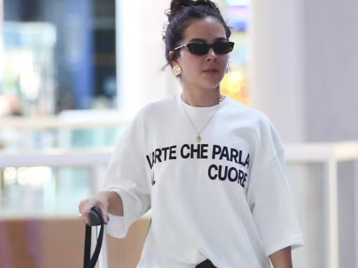 Na tarde desta segunda-feira (8), Mel Maia, de 21 anos, foi vista no aeroporto Santos Dumont, no Rio de Janeiro, em um momento de discrição. Usando óculos escuros, um camisão branco e calça de leve transparência com brilho, a atriz caminhou acompanhada enquanto se organizava para o embarque, ainda vivendo o luto pela perda recente da mãe, Débora Maia.