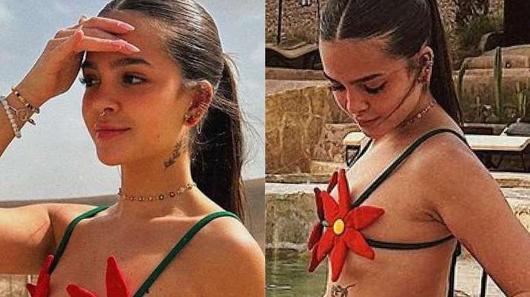 Mel Maia surpreende ao usar biquíni ousado em dia de sol na piscina