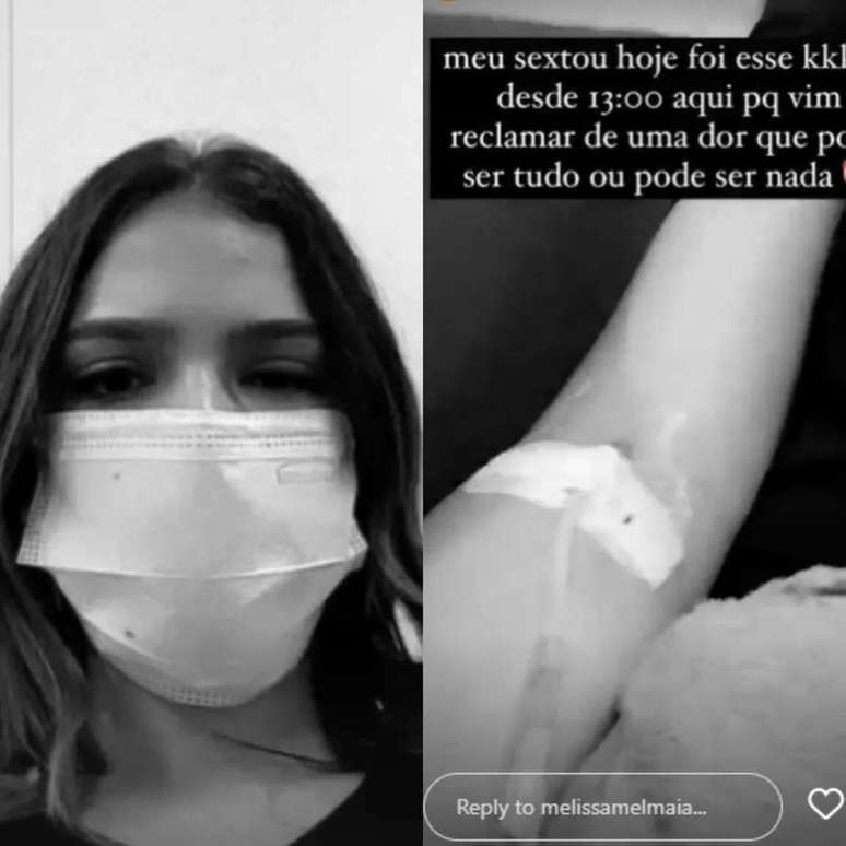 A atriz Mel Maia ("Tudo Por um Popstar") revelou para os fãs que passou a sexta-feira (16/12) num hospital após sentir dores fortes pelo corto. Ela postou em seu Stories uma foto em que aparece de máscara e com acesso no braço (para soro e/ou analgésico), e revelou ter passado o dia inteiro fazendo exames.