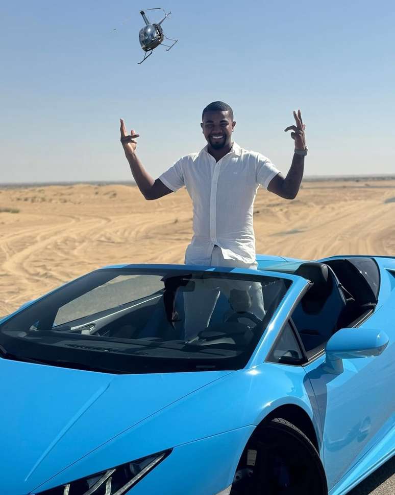 O ex-BBB Davi Brito exibiu uma foto em que aparecia em um carro luxuoso com um helicóptero atrás
