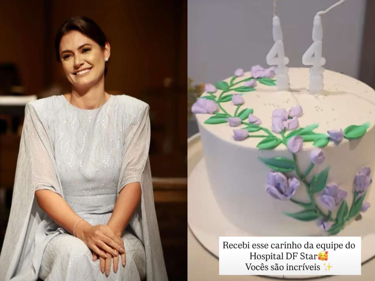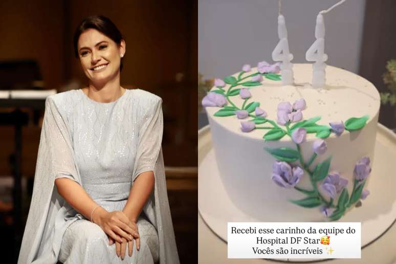 Michelle Bolsonaro completa 44 anos neste domingo, 22, e ganhou um bolo surpresa da equipe do hospital onde Jair Bolsonaro está internado em Brasília.