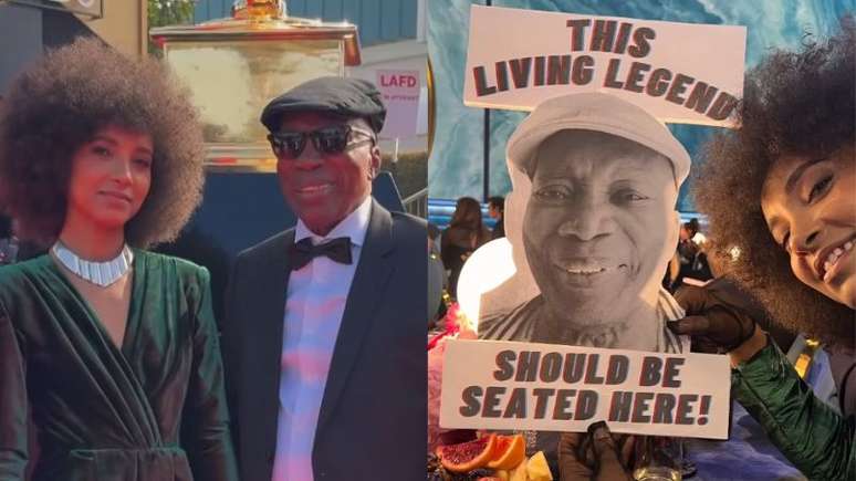 "Estou furiosa porque essa lenda viva não foi considerada importante o suficiente para sentar entre os artistas 'A-List', ou seja lá como as mesas do andar principal foram organizadas. Então, tive que trazê-lo comigo. Grite se nos verem na TV", finalizou ela.