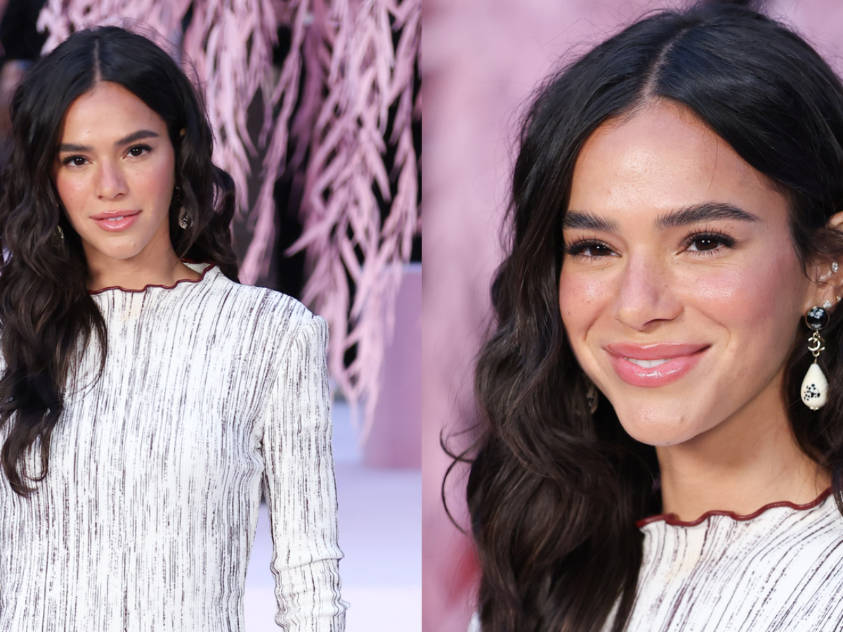 Bruna surgiu deslumbrante com um vestido da coleção primavera-verão 2026 da Chanel, apresentada em um desfile em outubro do ano passado. Na parte de cima, a peça tem mangas compridas, com tecido claro e texturizado e com acabamento levemente ondulado nas pontas, que cria uma sensação de movimento e fluidez.