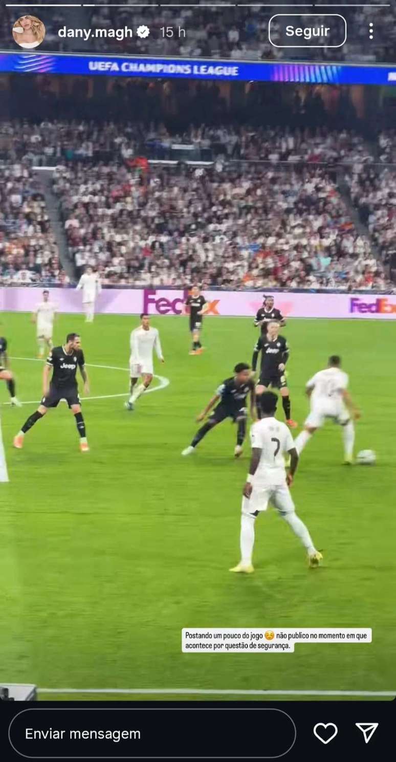 O clima envolvendo Day Magalhães e Vini Jr. continua gerando repercussão nas redes sociais. Dias antes de Virginia Fonseca viajar com os filhos para Madrid, a modelo compartilhou registros de sua presença na cidade e ainda aproveitou para assistir a uma partida do jogador no estádio. Em uma das publicações, ela escreveu: "Hola, Madrid. Nem tudo se compartilha", enquanto posava com uma taça de champanhe e a camisa do time do atacante.